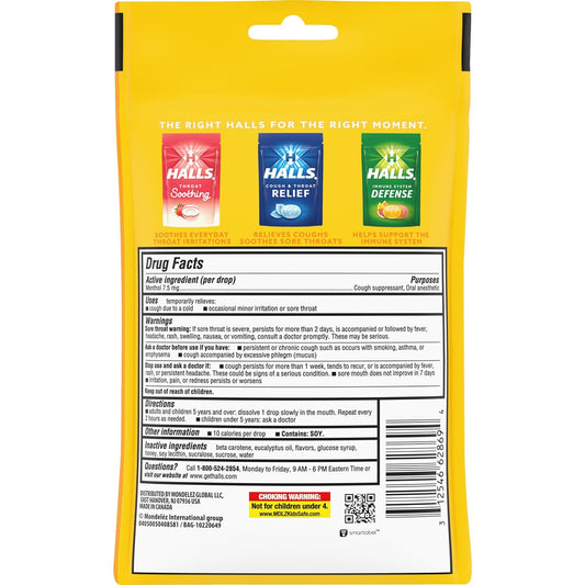 Halls® Menthol Cough and Throat Relief Drops, Honey-Lemon, 25 ct.