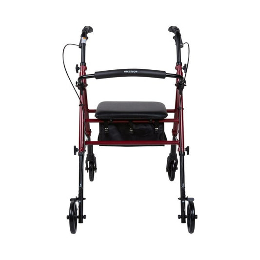 McKesson Red Four-Wheel Folding Rollator, 300 lbs. capacity