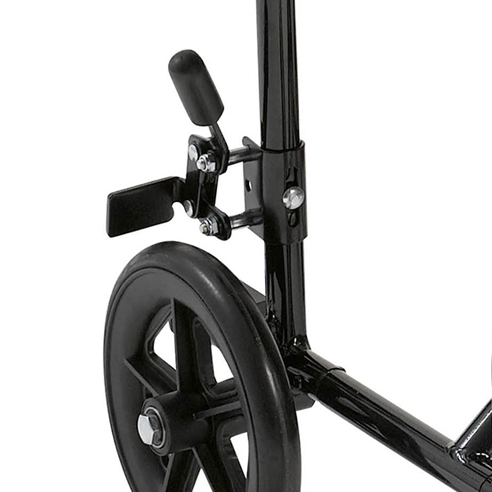- Solid, 8-inch caster wheels with rear locks are maintenance-free and provide a smooth, stable ride over most surfaces and security in parked position